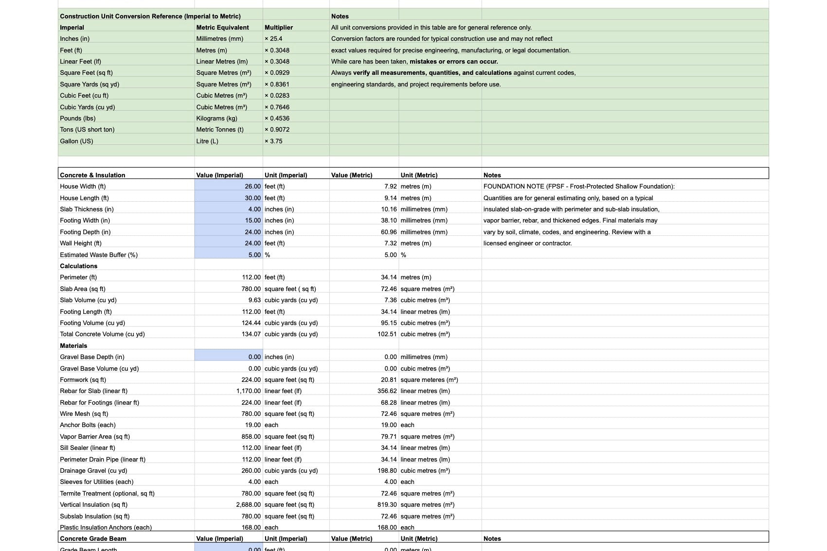 Material lists organized to support accurate pricing, efficient sourcing, and on-site construction decisions.
